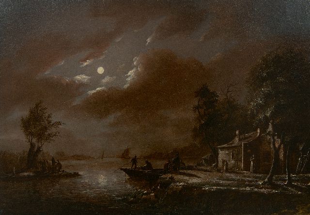 J.B. van Heijningen | Overzetveer bij maanlicht, olieverf op paneel, 20,5 x 29,2 cm, gesigneerd l.o. en zonder lijst
