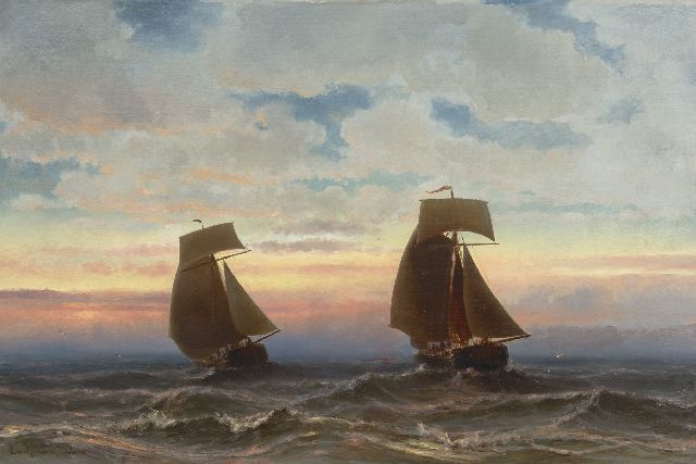 Jacob Eduard van Heemskerck van Beest | Zonsondergang op zee, olieverf op doek, 79,5 x 120,4 cm, gesigneerd l.o.