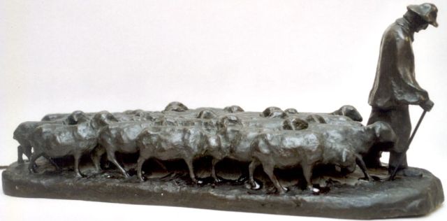 Jenny Luise Stefanie von Bary-Doussin | Herder met zijn kudde, brons, 68,0, gesigneerd op basis