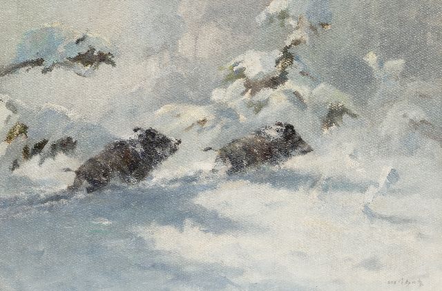 Jan Voerman jr. | Wintermorgen met rijp, olieverf op doek, 50,3 x 60,9 cm, gesigneerd l.o. met monogram en gedateerd '41