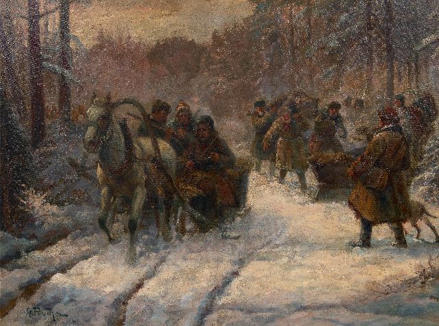 Willem Hendrik Eickelberg | Een besneeuwde bosweg, olieverf op doek, 45,4 x 33,4 cm, gesigneerd l.o. en zonder lijst