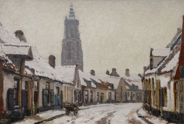 Reinier Sybrand Bakels | Winters gezicht in Amersfoort met de Onze Lieve Vrouwetoren, olieverf op doek, 91,8 x 131,8 cm, gesigneerd r.o. en te dateren ca. 1920
