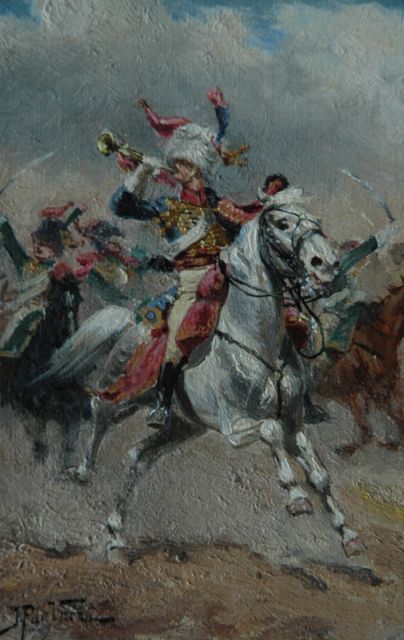 Justus Pieter de Veer | Cavalerie, olieverf op doek op board, 30,0 x 25,0 cm, gesigneerd l.o. en gedateerd 1920