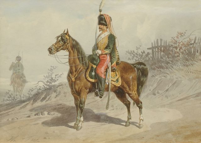 Théodore Fort | Huzaar, aquarel op papier, 19,7 x 26,6 cm, gesigneerd l.o.