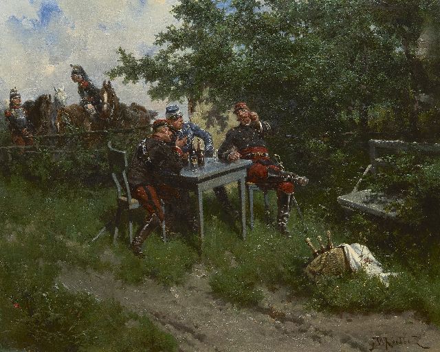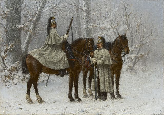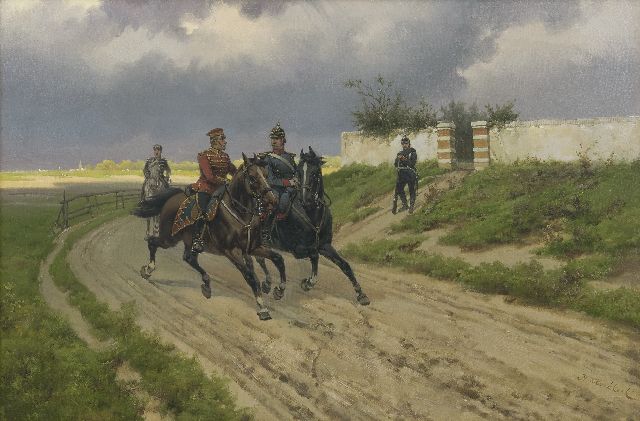 Hermanus Willem Koekkoek | Pruisische cavaleristen te paard, olieverf op doek, 40,3 x 60,4 cm, gesigneerd r.o. en te dateren 1890