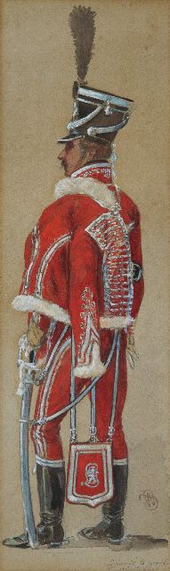 Willem Constantijn Staring | Staande huzaar, aquarel en gouache op papier, 44,0 x 13,0 cm, gesigneerd r.o. met monogram