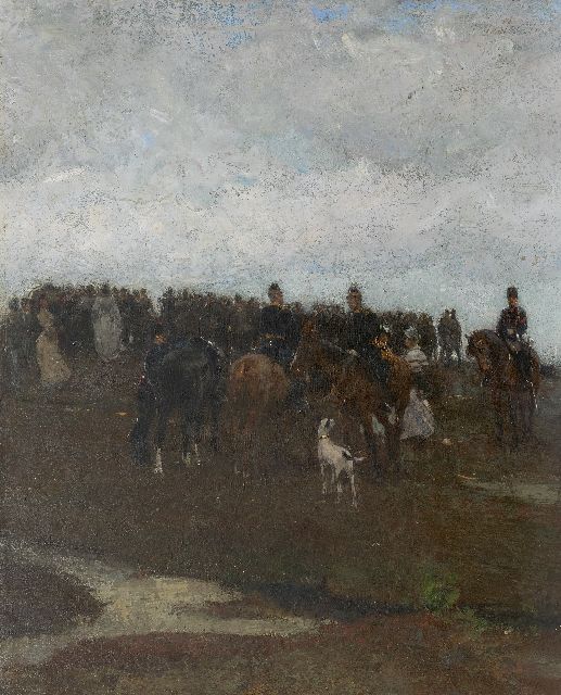 Nicolaas van der Waay | Cavaleristen en dames op het duin, olieverf op doek op paneel, 70,5 x 58,0 cm, te dateren ca. 1905