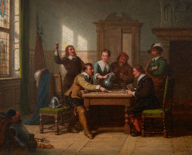Gustav Zaak | De vrolijke drinkers, olieverf op doek, 55,5 x 68,0 cm, gesigneerd l.o.