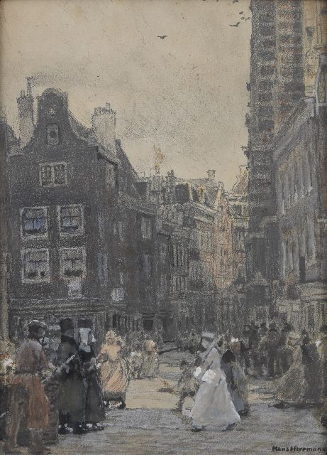 Floris Arntzenius | Drukbevolkte Spuistraat in Den Haag, aquarel op papier, 41,6 x 30,7 cm, gesigneerd l.o.