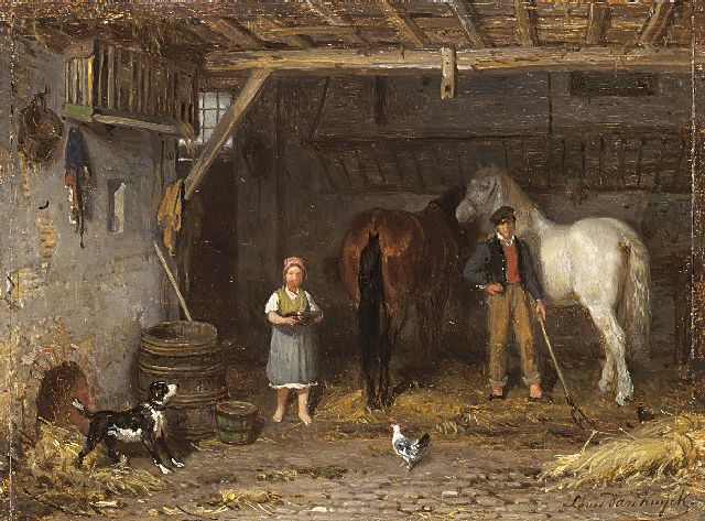 Jean Louis van Kuyck | Levendig stalinterieur, olieverf op paneel, 16,9 x 22,6 cm, gesigneerd r.o.