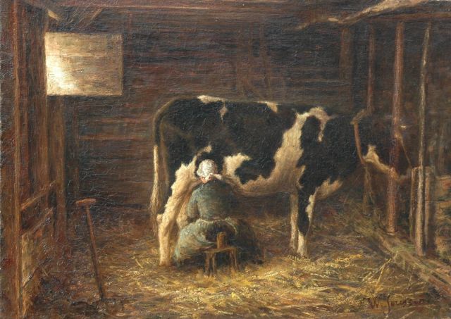 Willem Jorissen | Melktijd in de stal, olieverf op doek, 41,2 x 57,5 cm, gesigneerd r.o.