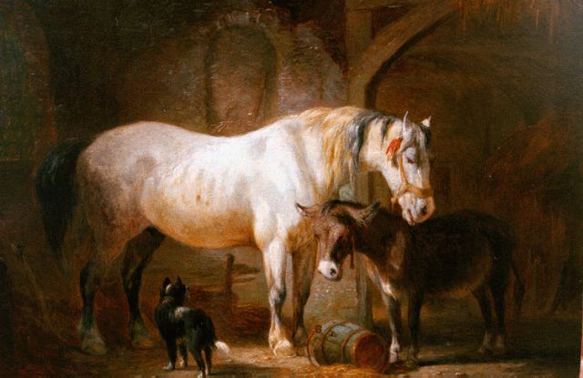 Pieter Frederik van Os | Paard en ezel op stal, olieverf op paneel, 16,3 x 22,4 cm, gesigneerd l.o.