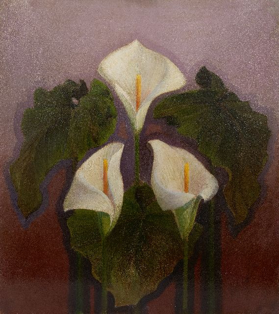 Dirk Verstraten | Drie witte aronskelken, olieverf op papier op board, 48,3 x 42,3 cm, gesigneerd r.o.