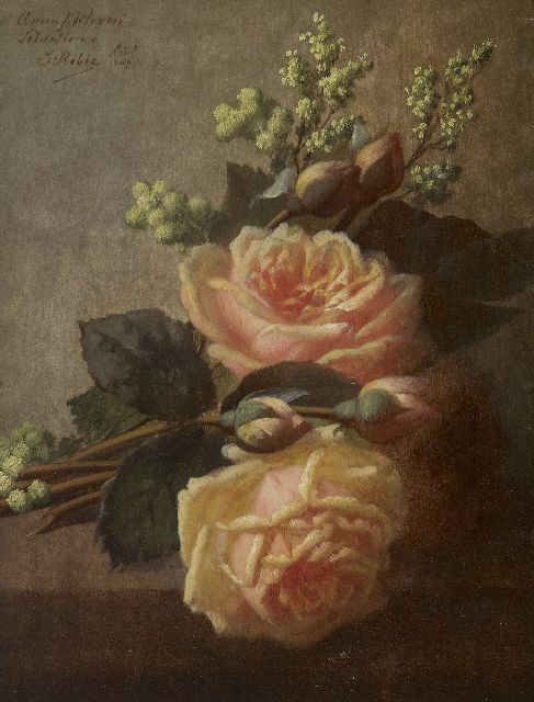 Jean-Baptiste Robie | Rozen op een plint, olieverf op paneel, 36,3 x 27,0 cm, gesigneerd l.b. en gedateerd 'Août 1907'