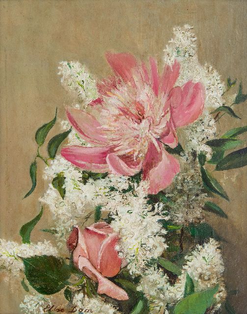 Elise Dom | Bloemstilleven, olieverf op paneel, 21,0 x 28,0 cm