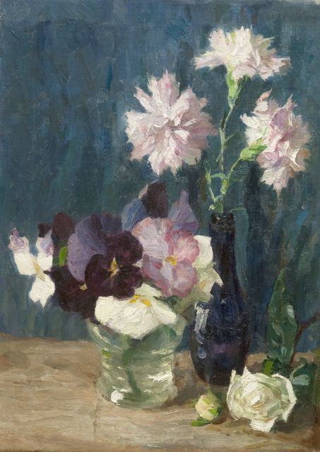 Sarika Góth | Stilleven met bloemen in blauwe vaas, olieverf op doek, 40,1 x 50,0 cm, gesigneerd l.b. en gedateerd 1986