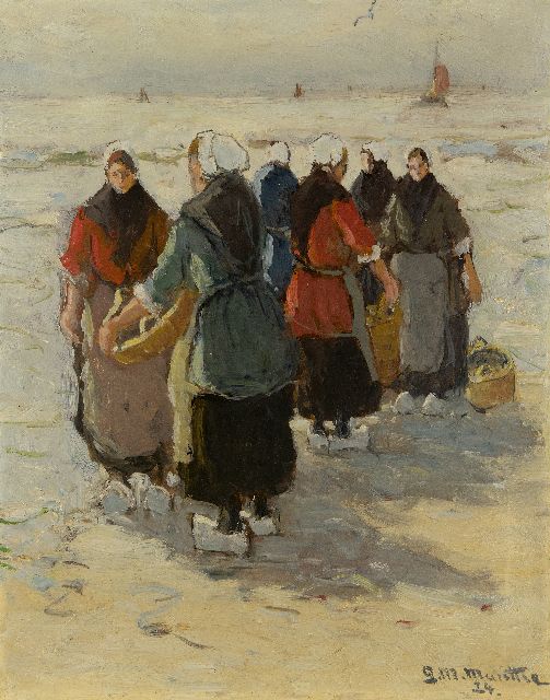 Johannes Marius ten Kate | Visafslag op het strand van Scheveningen, olieverf op doek, 50,5 x 73,5 cm, gesigneerd r.o.