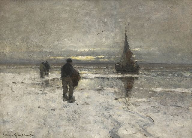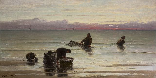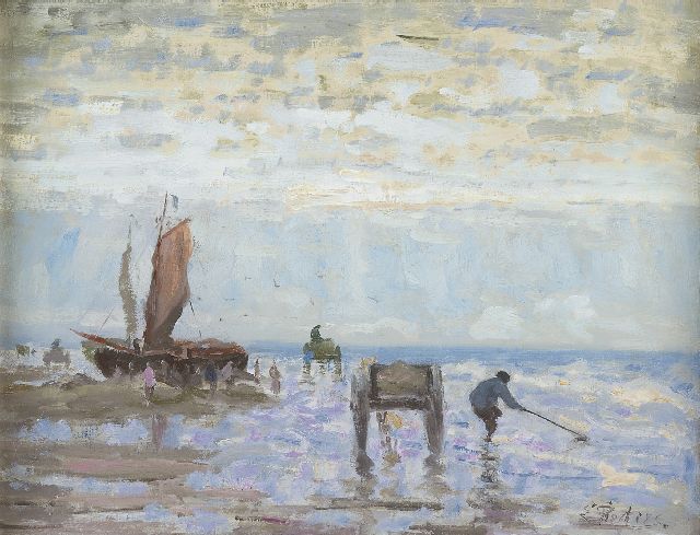 Evert Pieters | Schelpenvissers, Katwijk, olieverf op doek, 37,4 x 49,5 cm, gesigneerd r.o. en te dateren tussen 1900-1910.
