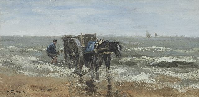 Willem George Frederik Jansen | Schelpenvisser op het strand, olieverf op doek, 20,2 x 40,4 cm, gesigneerd l.o.