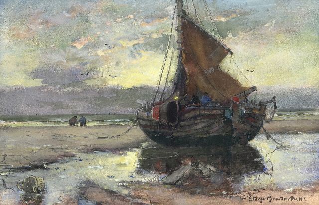 Morgenstjerne Munthe | Bomschuit op het strand, aquarel en gouache op papier, 32,3 x 49,5 cm, gesigneerd r.o. en gedateerd 1912