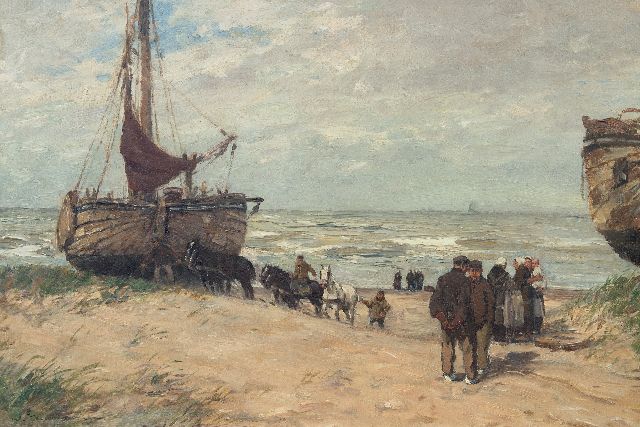 Philip Sadée | Visafslag op het strand van Scheveningen, olieverf op doek, 49,9 x 75,0 cm, gesigneerd r.o.