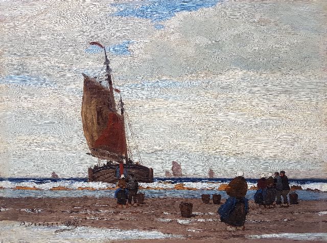 Morgenstjerne Munthe | De aankomst van de bomschuit, olieverf op doek op paneel, 40,1 x 51,1 cm, gesigneerd l.o. en gedateerd '14