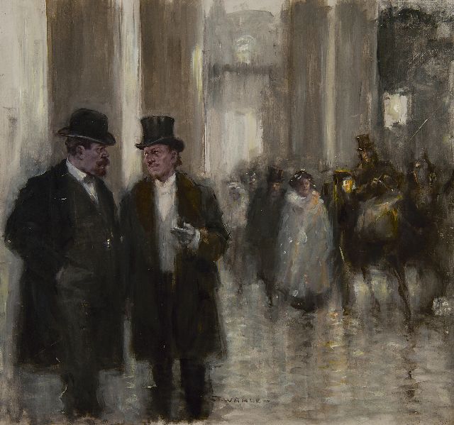 Fritz Wahle | Voor het operagebouw, olieverf op schildersboard, 39,5 x 42,7 cm, gesigneerd m.o.