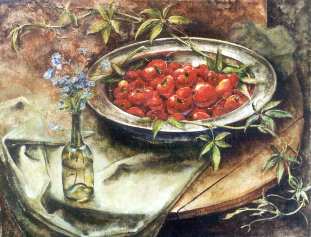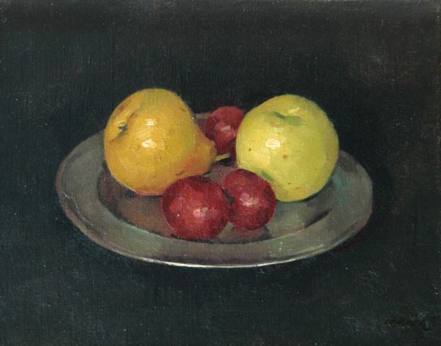 Frits Verdonk | Fruit op tinnen schaal, olieverf op doek, 24,0 x 30,0 cm, gesigneerd r.o.