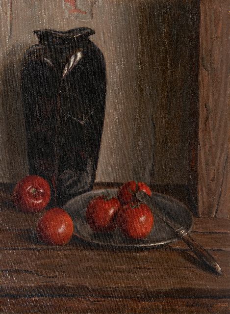 Co Hansen | Stilleven met vaas en tomaten, olieverf op doek, 54,4 x 40,5 cm