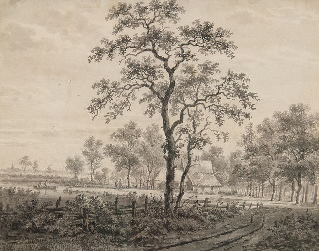 Gerrit Hendrik Göbell | Gezicht bij Rijssen, pen, penseel en inkt op papier, 22,1 x 27,8 cm, gesigneerd verso en verso gedateerd 1830