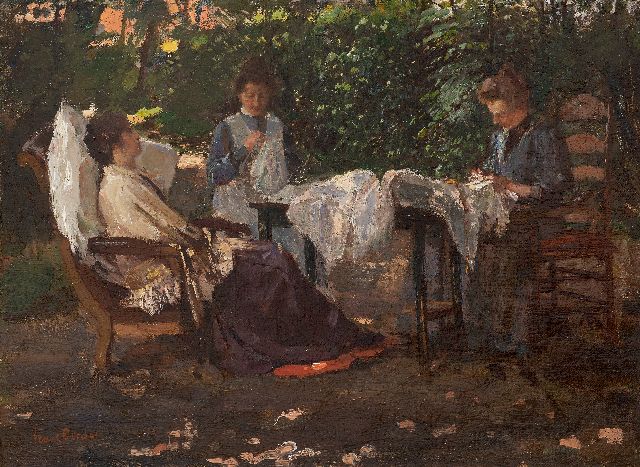 Frans Oerder | Een rustige middag in lommerrijke tuin, olieverf op doek, 37,3 x 50,5 cm, gesigneerd l.o.