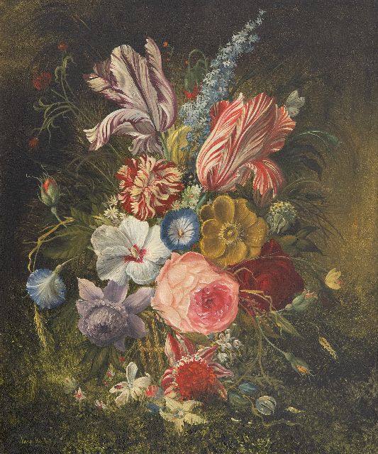 Bloemstilleven met rozen, tulpen, primula's en andere bloemen