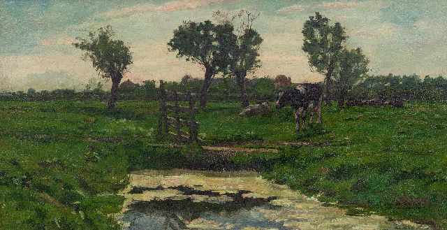 Arnold Marc Gorter | Koeien bij de Vordense Beek, olieverf op doek, 42,2 x 32,6 cm, gesigneerd r.o. (dubbel)