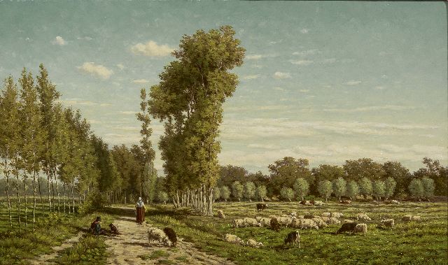 Schaapherder rustend langs een populierenlaantje (pendant)