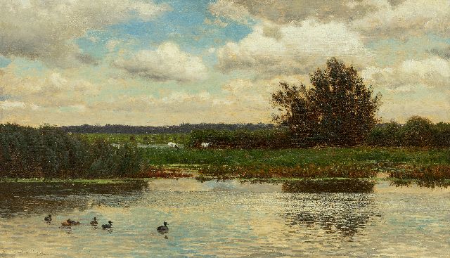 Julius Jacobus van de Sande Bakhuyzen | Polderlandschap, olieverf op doek op paneel, 33,4 x 57,5 cm, gesigneerd l.o. en zonder lijst