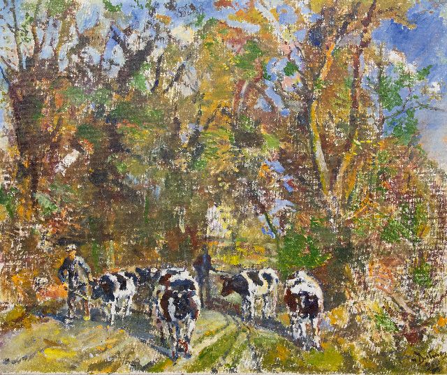 Helmert Richard van der Flier | Herder met vee, olieverf op paneel, 31,0 x 50,2 cm, gesigneerd r.o. en gedateerd '70