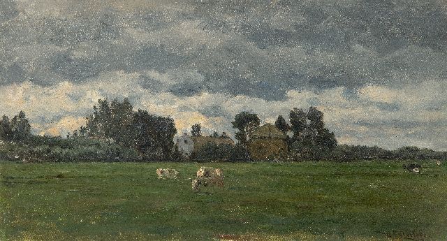 Co Breman | Vee in de wei (aan de IJssel), olieverf op doek, 28,2 x 38,4 cm, gesigneerd r.o.