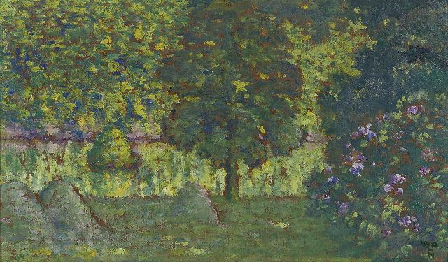 De tuin achter het woonhuis van de kunstenaar in Hilversum