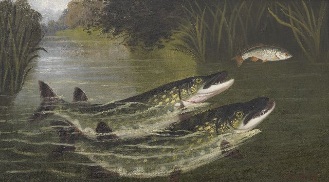Gerrit Willem Dijsselhof | Snoek, olieverf op doek, 34,5 x 40,2 cm, gesigneerd r.o. met monogram en zonder lijst