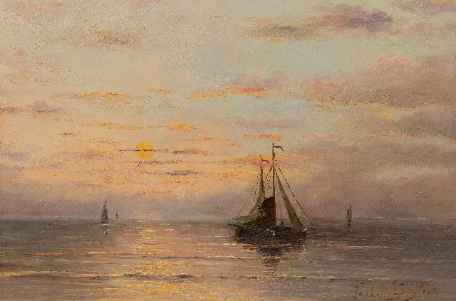 Hendrik Willem Mesdag | Het vertrek van de vissersvloot, Scheveningen, olieverf op doek, 50,5 x 40,5 cm, gesigneerd r.o.