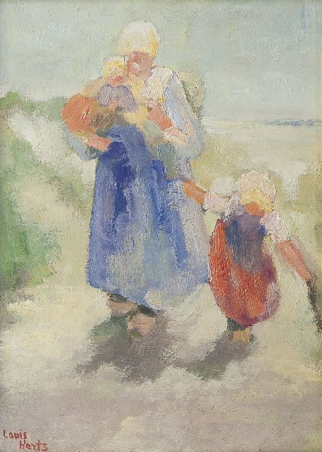 Louis Hartz | Naar huis door de duinen, Katwijk, olieverf op board op paneel, 25,3 x 19,2 cm, gesigneerd l.o.