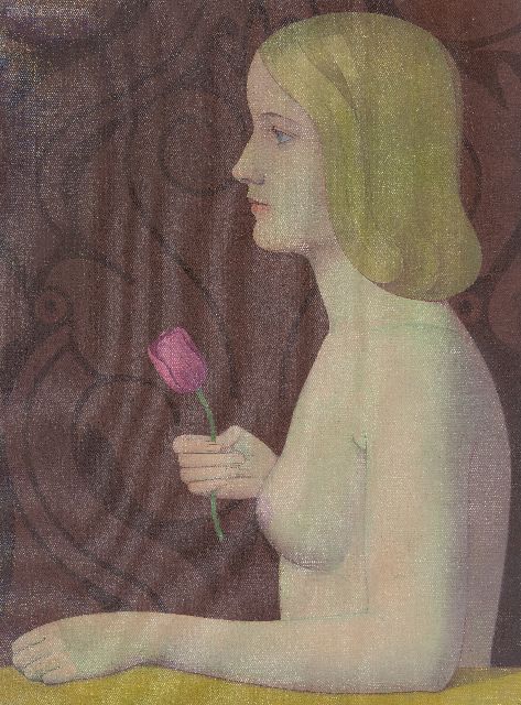 Jan Heyse | Naakt met een tulp, olieverf op doek op board, 54,6 x 40,3 cm, gesigneerd l.b. en gedateerd 1951