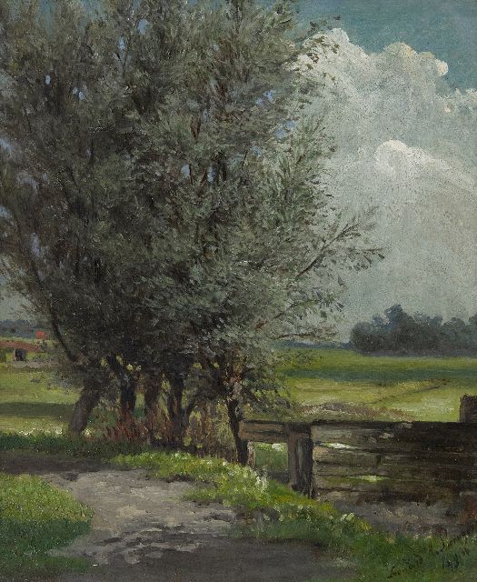 Willem Maris | Boer met praam in weidelandschap, olieverf op doek, 66,3 x 94,5 cm, te dateren ca. 1906