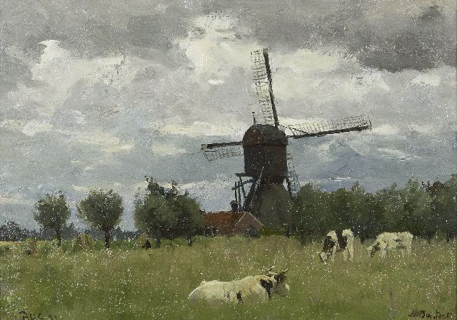 Nicolaas Bastert | Wipwatermolen van de polder Otterspoorbroek, Breukelen, olieverf op doek op paneel, 24,5 x 34,0 cm, gesigneerd r.o. en gedateerd Aug. '82, zonder lijst