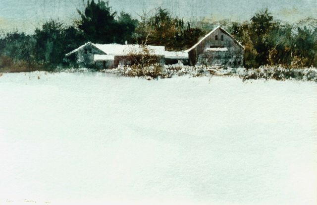 David Schulman | Huizen in winters landschap, 18,5 x 26,8 cm, gesigneerd l.o.