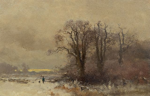 Willem Hendrik Eickelberg | Een besneeuwde bosweg, olieverf op doek, 45,4 x 33,4 cm, gesigneerd l.o. en zonder lijst