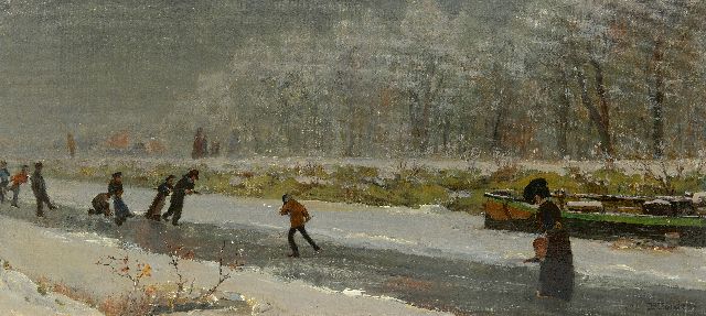 Jacob Jan Coenraad Spohler | IJspret, olieverf op doek, 44,0 x 67,1 cm, gesigneerd l.o.