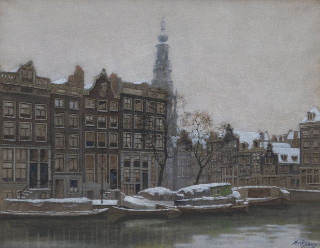 Arjen Galema | Amsterdam in de winter, met uitzicht op de Zuiderkerkstoren, aquarel op papier, 52,0 x 66,5 cm, gesigneerd r.o. en zonder lijst