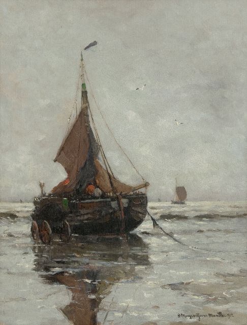 Morgenstjerne Munthe | Bomschuit op het strand, Katwijk, olieverf op doek, 67,3 x 51,6 cm, gesigneerd r.o. en gedateerd 1912