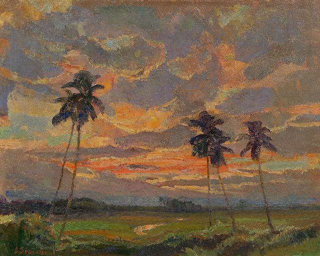 John Franciscus Hoppenbrouwers | Zonsondergang, olieverf op paneel, 18,2 x 24,1 cm, gesigneerd r.o.